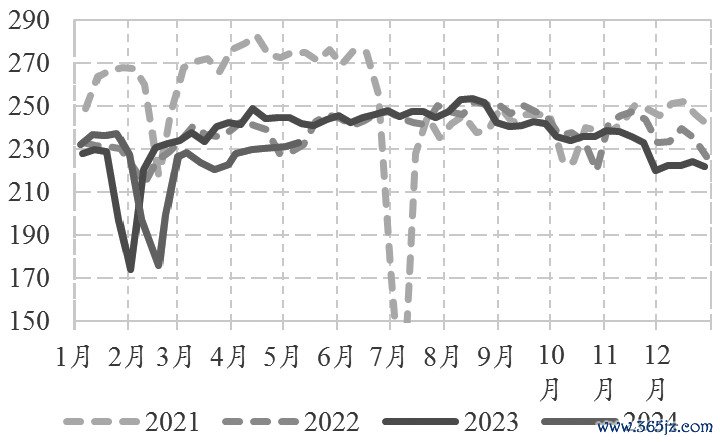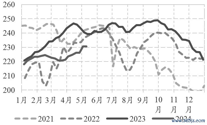 图为247家钢厂铁水日均产量(单位:万吨)(作者期货投资咨询从业证书编号Z0014488)正规实盘配资十大平台